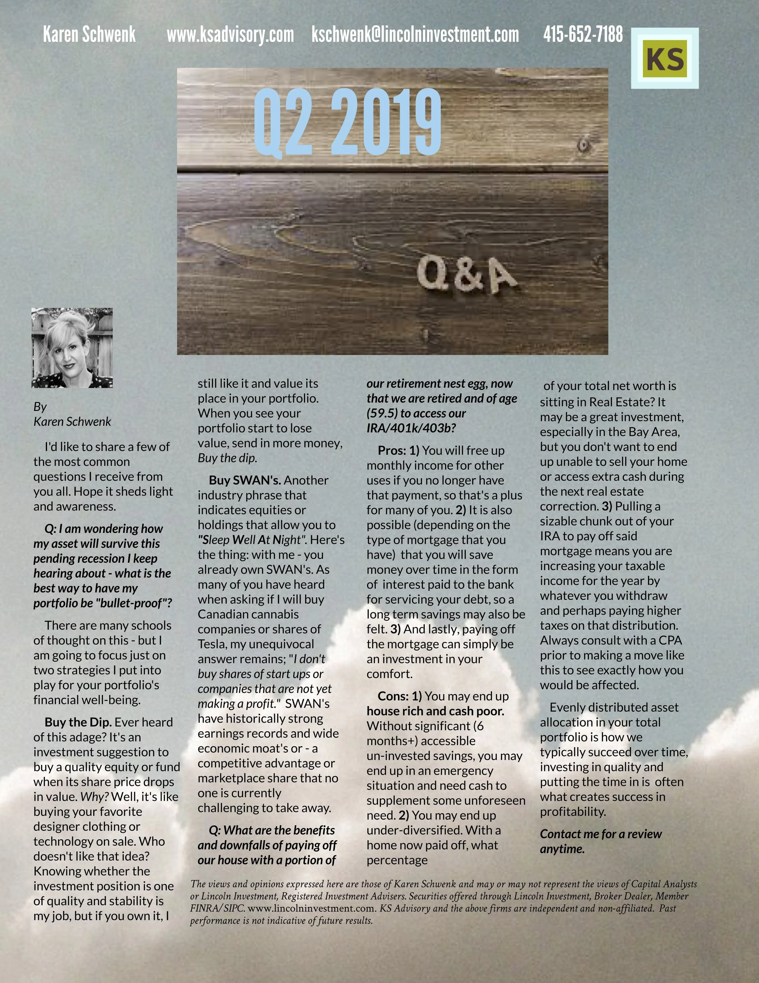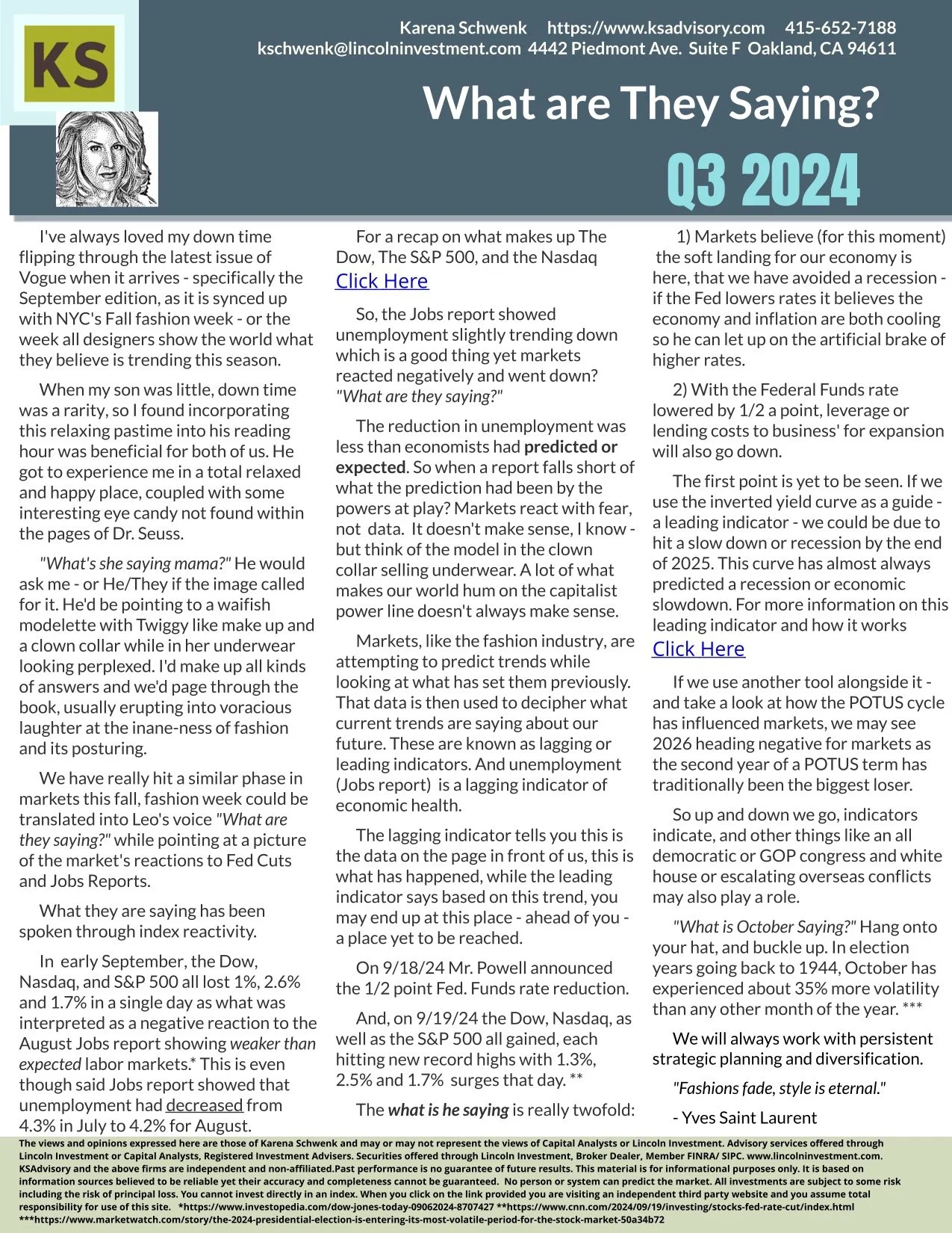 If opted in by sharing your email, you will only receive quarterly content from KSAdvisory directly, samples of which are below.